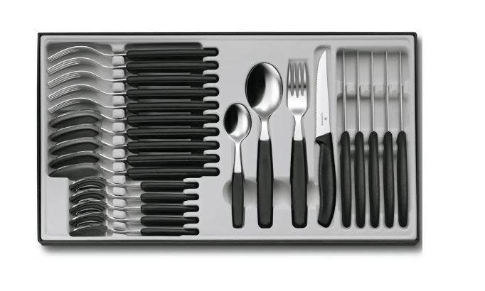 مجموعه 24 عددی میز غذاخوری همراه ویکتورینوکس با دسته پروپیلنی مشکی 6.7233.24