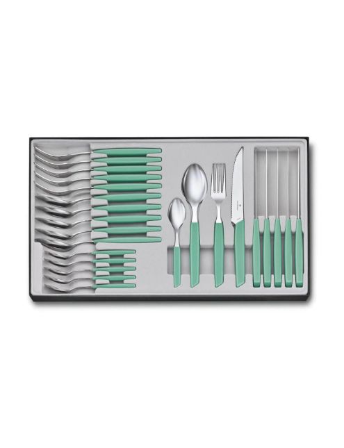 مجموعه 24 عددی میز غذاخوری همراه با چاقوی استیک خوری ویکتورینوکس دسته سبز 6.9096.12W41.24