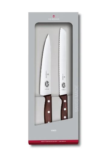مجموعه دو عددی چاقو و کاردک ویگتورینوکس دسته چوبی قهوه ای 5.1020.2G