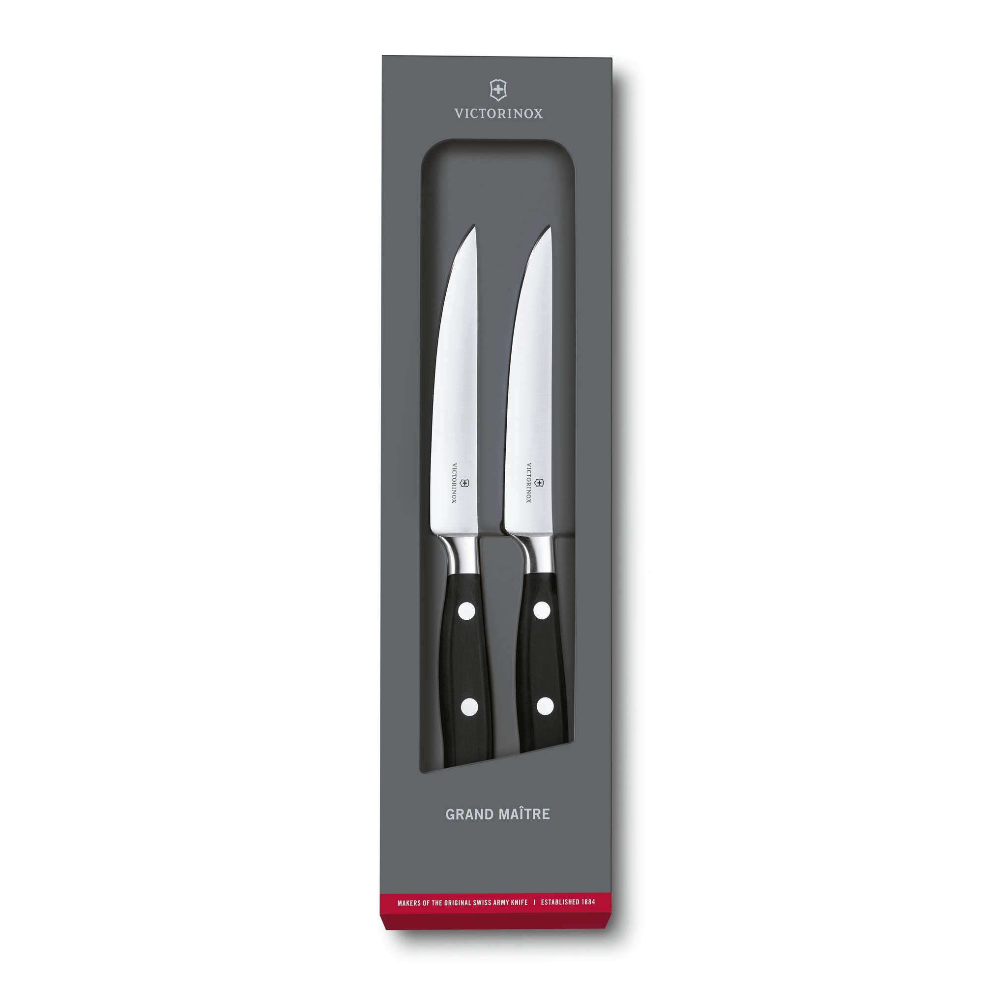 ست چاقوی استیک Grand Maître Victorinox با لبه صاف (مدل 7.7242.2)، اوج دقت و ظرافت را به میز شما میآورد. این چاقوهای آهنگری شده با تعادل بینقص و دستهای ارگونومیک، برش گوشتهای لطیف مانند فیله یا راسته را به تجربهای بینظیر تبدیل میکنند. دوام، چابکی و قدرت فوقالعاده این چاقوها تضمین میکند که هر برش، دقیق و بدون زحمت خواهد بود. این ست دو عددی، آماده است تا لحظات لذتبخش شما را در کنار غذا تکمیل کند و تجربهای لوکس از صرف استیک را به ارمغان بیاورد.
