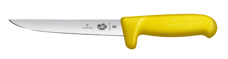 چاقوی استخوان‌بر Victorinox 5.6008.15M، با تیغه‌ای ۱۵ سانتی‌متری (۶ اینچ) پهن و ایمنی‌گارد، ابزاری قدرتمند برای جداسازی آسان و کارآمد گوشت از استخوان با حداکثر ایمنی است. این چاقو با دسته Fibrox زرد رنگ و دماغه ایمنی کشیده، برای رعایت استانداردهای بهداشتی HACCP در آشپزخانه‌های حرفه‌ای، به ویژه هنگام کار با مرغ، ایده‌آل است. ترکیب دماغه ایمنی کشیده و دسته زرد رنگ، این چاقو را به یک راه حل برتر برای پردازش مرغ تبدیل می‌کند، زیرا به طور همزمان خطر آسیب به اپراتور و انتقال عوامل بیماری‌زا را به حداقل می‌رساند. دسته ارگونومیک و ضد لغزش آن، راحتی و کنترل بی‌نظیری را حتی در استفاده طولانی‌مدت فراهم می‌کند و دماغه ایمنی کشیده از لغزش دست به سمت تیغه جلوگیری می‌نماید. تیغه فولادی ضد زنگ با کربن بالا، تیزی بی‌نظیر و دوام طولانی‌مدت را تضمین می‌کند.