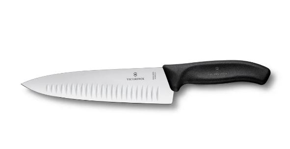 چاقوی کلاسیک آشپزخانه با روکش مخصوص victorinox با دسته پروپیلنی مشکی و تیغه شیاردار 20 سانتی 6.8083.20B