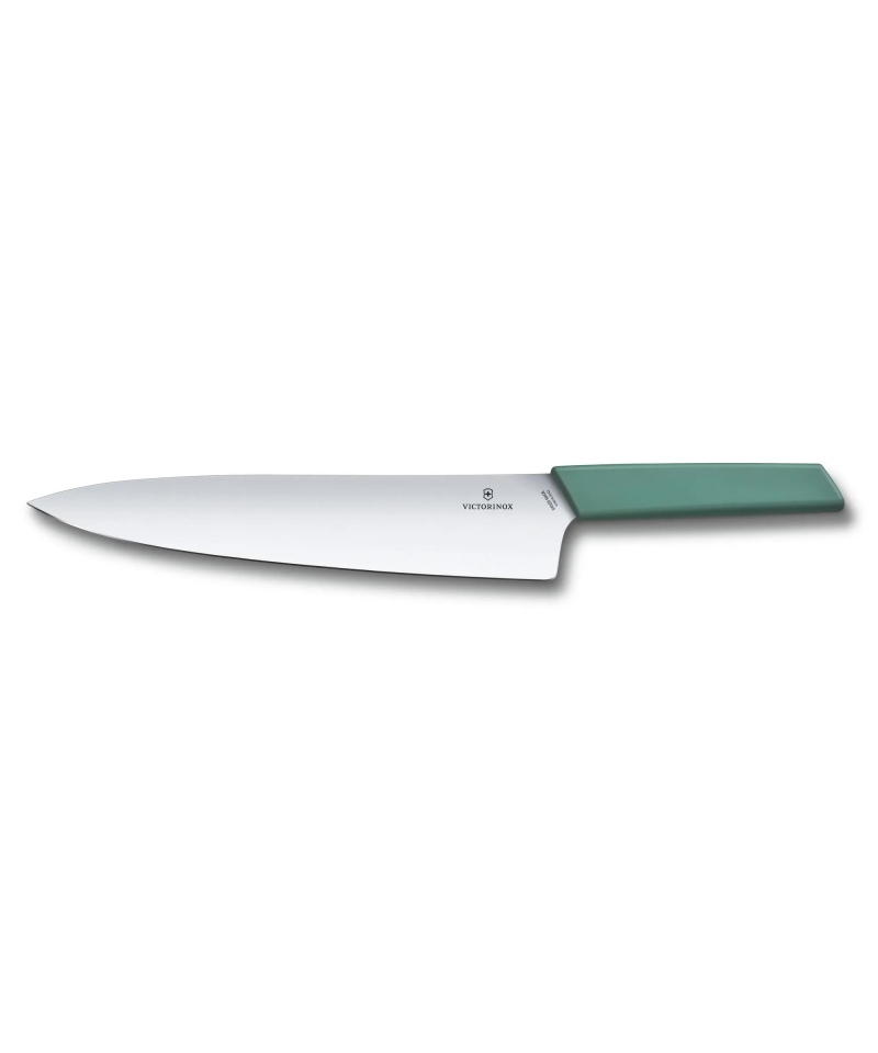 چاقوی سرآشپز سوئیس مدرن ویکتورینوکس مدل 6.9016.2543B، با رنگ سبز مریم‌گلی آرامش‌بخش و تیغه 25 سانتی‌متری بلند، ابزاری بی‌رقیب برای برش آسان و بی‌دردسر گوشت‌های بسیار بزرگ است. این چاقوی سوئیسی با لبه صاف و تیغه فولادی ضد زنگ و مقاوم در برابر سایش، به شما امکان می‌دهد تا با حرکات برش بلند و یکنواخت، شانه خوک را خرد کرده یا برش‌های دقیق از گوشت کباب و استیک ایجاد کنید. طراحی ارگونومیک آن، راحتی نهایی و سهولت استفاده را تضمین می‌کند. تیغه فولادی ضد زنگ آن با دسته مصنوعی با عملکرد روان، تعادل کاملی دارد. طراحی ظریف و در عین حال برجسته این چاقو، آن را به گزینه‌ای ایده‌آل برای هماهنگی با زیبایی‌شناسی هر آشپزخانه‌ای تبدیل می‌کند. این محصول، با حفظ تمام ویژگی‌های عملکردی چاقوهای سرآشپز بلند، از طریق رنگ‌بندی خاص خود، یک بعد زیبایی‌شناختی به آشپزخانه می‌افزاید.   کارایی محصول: برش آسان تکه‌های بسیار بزرگ گوشت خرد کردن شانه خوک برش دادن گوشت کباب اسلایس کردن استیک ایجاد برش‌های بلند و یکنواخت در یک حرکت