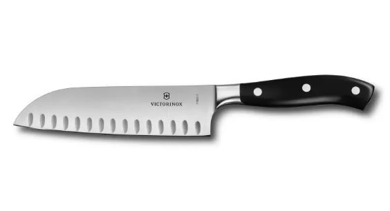 چاقوی سانتوکو Grand Maître Victorinox با دسته مشکی و لبه شیاردار (مدل 7.7323.17G)، یک ابزار آشپزخانه همهکاره است که برای برش، تکهتکه کردن و خرد کردن مواد غذایی طراحی شده است. این چاقو، نسخه ژاپنی چاقوی سرآشپز است و بزرگترین استعداد آن، چندکارگی آن است – و تخصص واقعی آن، انجام همه کارها به بهترین نحو است. با شکل خاص و تعادل فوقالعاده، این سانتوکو یک ابزار همهکاره است که استفاده از آن در هر روز لذتبخش خواهد بود. تیغه آهنگری شده با لبه شیاردار، چسبیدن غذا به تیغه را کاهش میدهد و برشهای تمیز و بدون زحمت را تضمین میکند.