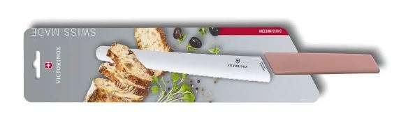 چاقوی برش نان ویکتورینوکس دسته صورتی تیغه صاف نوک گرد 22 سانتی 6.9076.22W5B