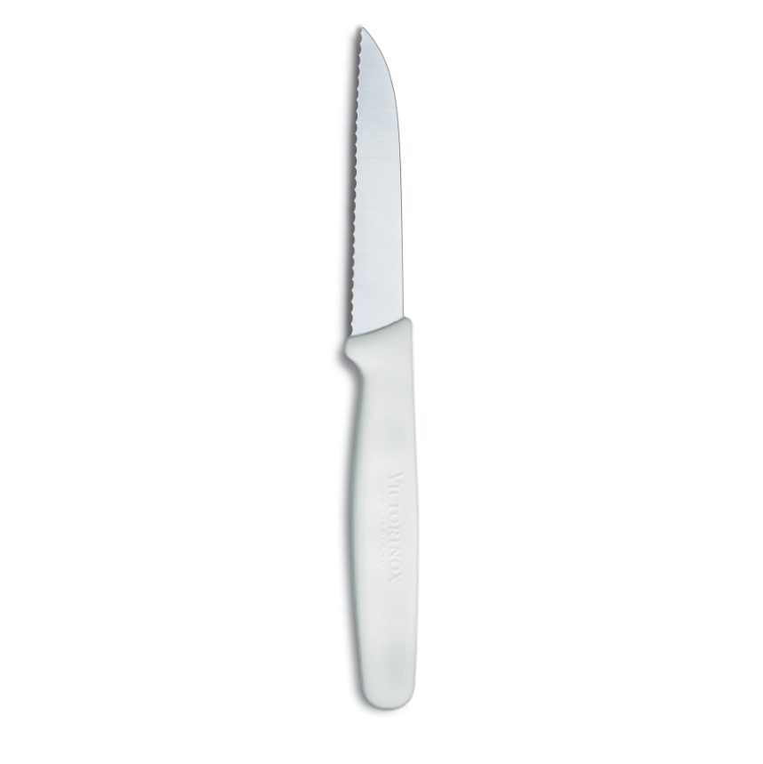 چاقوی میوه خوری با روکش مخصوص victorinox با دسته پروپیلنی سفید و تیغه موج دار 5.0437.S