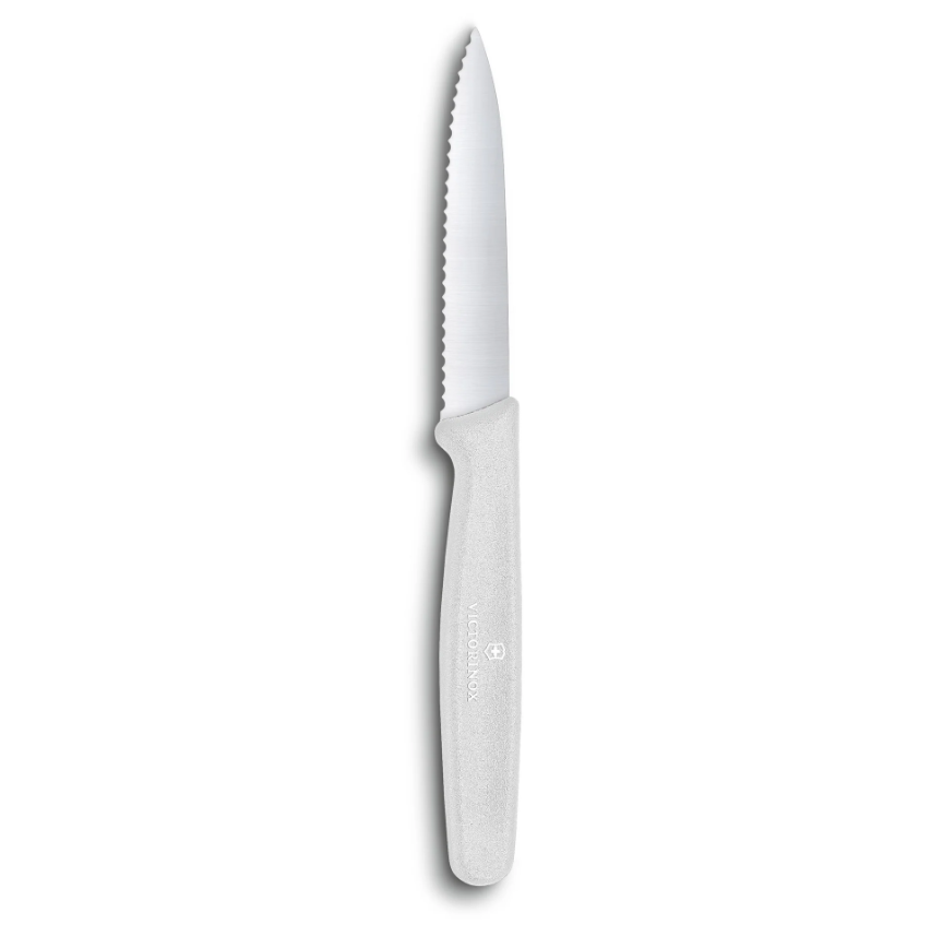 چاقوی میوه خوری با روکش مخصوص victorinox با دسته پروپیلنی سفید و تیغه موج دار 8 سانتی 5.0637.S