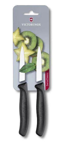 مجموعه دو عددی چاقو ویکتورینوکس دسته پروپیلنی مشکی و تیغه دندانه دار 8 سانتی 6.7633.B