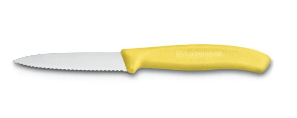چاقوی میوه خوری کلاسیک victorinox با دسته زرد و تیغه موج دار 8 سانتی 6.7636.L118