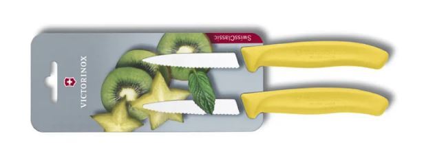 مجموعه دو عددی چاقو ویکتورینوکس دسته زرد و تیغه دندانه دار 8 سانتی 6.7636.L118B
