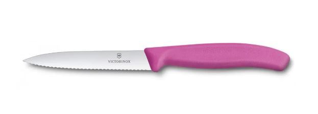 چاقوی آشپزخانه ویکتورینوکس با دسته صورتی و تیغه دندانه دار 10 سانتی 6.7736.L5