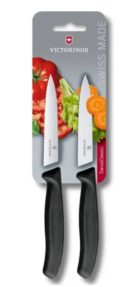 مجموعه دو عددی چاقو ویکتورینوکس دسته مشکی و تیغه دندانه دار و ساده 10 سانتی 6.7793.B