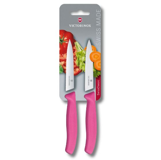 مجموعه دو عددی چاقو ویکتورینوکس دسته صورتی و تیغه دندانه دار و ساده 10 سانتی 6.7796.L5B