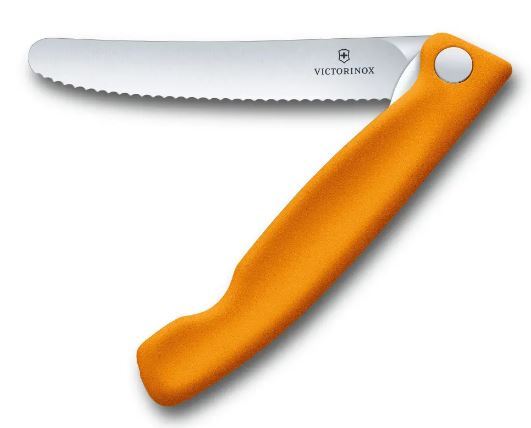 چاقوی تاشوی آشپزخانه ویکتورینوکس با دسته نارنجی و تیغه دندانه دار 11سانتی 6.7836.F9B