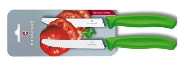 مجموعه دو عددی چاقو ویکتورینوکس با دسته سبز و تیغه دندانه دار 11سانتی 6.7836.L114B
