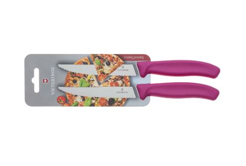 مجموعه دو عددی چاقو ویکتورینوکس دسته صورتی و تیغه دندانه دار 12 سانتی 6.7936.12L5B