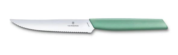 چاقوی استیک سوئیس مدرن ویکتورینوکس مدل 6.9006.12W41 با رنگ سبز نعنایی، ابزاری ضروری برای هر علاقهمند به استیک است. این چاقو با تیغه موجدار (دندانهدار) فوقالعاده تیز از جنس فولاد ضد زنگ، به نرمی و بدون زحمت از میان انواع برشهای گوشت عبور میکند و تجربه یک برش بینقص را فراهم میآورد. دستههای ارگونومیک و ضد لغزش از جنس PPC، استفادهای راحت و کنترل دقیق را تضمین میکند. با ظاهر مدرن و عملکردی بیعیب و نقص، این چاقو همراهی ایدهآل برای میز شام شما خواهد بود و به شما کمک میکند تا از هر لقمه استیک خود لذت ببرید.