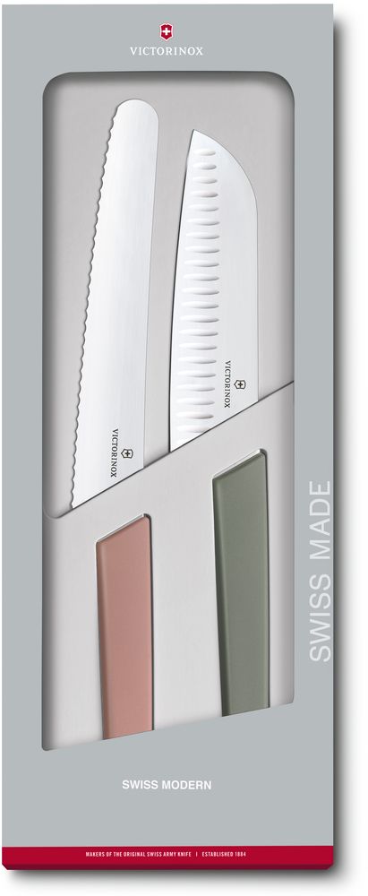 ست آشپزخانه 2 تکه Victorinox Swiss Modern با کد 6.9096.22G، یک ترکیب پیشرو و چندکاره است که به راحتی از پس انبوهی از کارهای روزمره آشپزی برمیآید. این ست شامل یک چاقوی نان و شیرینی و یک چاقوی سانتوکو است که هر دو برای عملکرد بالا در آشپزخانه طراحی شدهاند. این ست با دستههای مصنوعی چندرنگ، ظاهری مدرن و زیبا به آشپزخانه شما میبخشد. طراحی ارگونومیک دستهها، راحتی و سهولت استفاده را تضمین میکند. تیغههای این چاقوها از فولاد ضد زنگ مقاوم در برابر سایش ساخته شدهاند که دوام و تیزی فوقالعادهای را ارائه میدهند. این ست یک دوی قدرتمند است که به شما در انجام کارهای آشپزخانه کمک میکند. ترکیب چاقوی نان (لبه موجدار) و سانتوکو (لبه فلوتدار) در یک ست، نشاندهنده رویکرد Victorinox به ارائه راهحلهای تخصصی و در عین حال مکمل برای نیازهای متنوع آشپزخانه است. Victorinox با انتخاب این دو چاقوی خاص، یک دوی چندکاره را ارائه میدهد که طیف وسیعی از کارهای آشپزخانه را پوشش میدهد. چاقوی نان برای مواد نرم با پوست سفت (مانند نان) و چاقوی سانتوکو برای برشهای دقیق و جلوگیری از چسبندگی (مانند سبزیجات یا ماهی) ایدهآل است