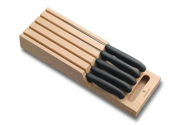 مجموعه 5 عددی با دسته پروپیلنی مشکی ویکتورینوکس به همراه نگهدارنده داخل کشویی چوبی 5.1143.5