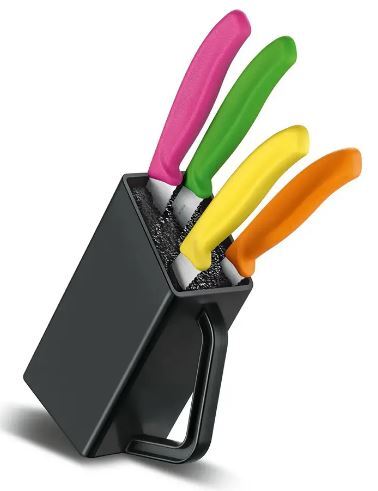 مجموعه چهار عددی چاقو دسته پروپیلنی چند رنگ ویکتورینوکس به همراه نگهدارند پلاستیکی مشکی 6.7126.4