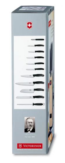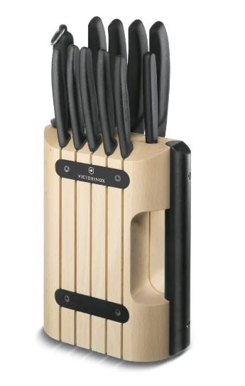 مجموعه یازده عددی دسته پروپیلنی مشکی ویکتورینوکس با نگهدارنده چوبی کرم 6.7153.11