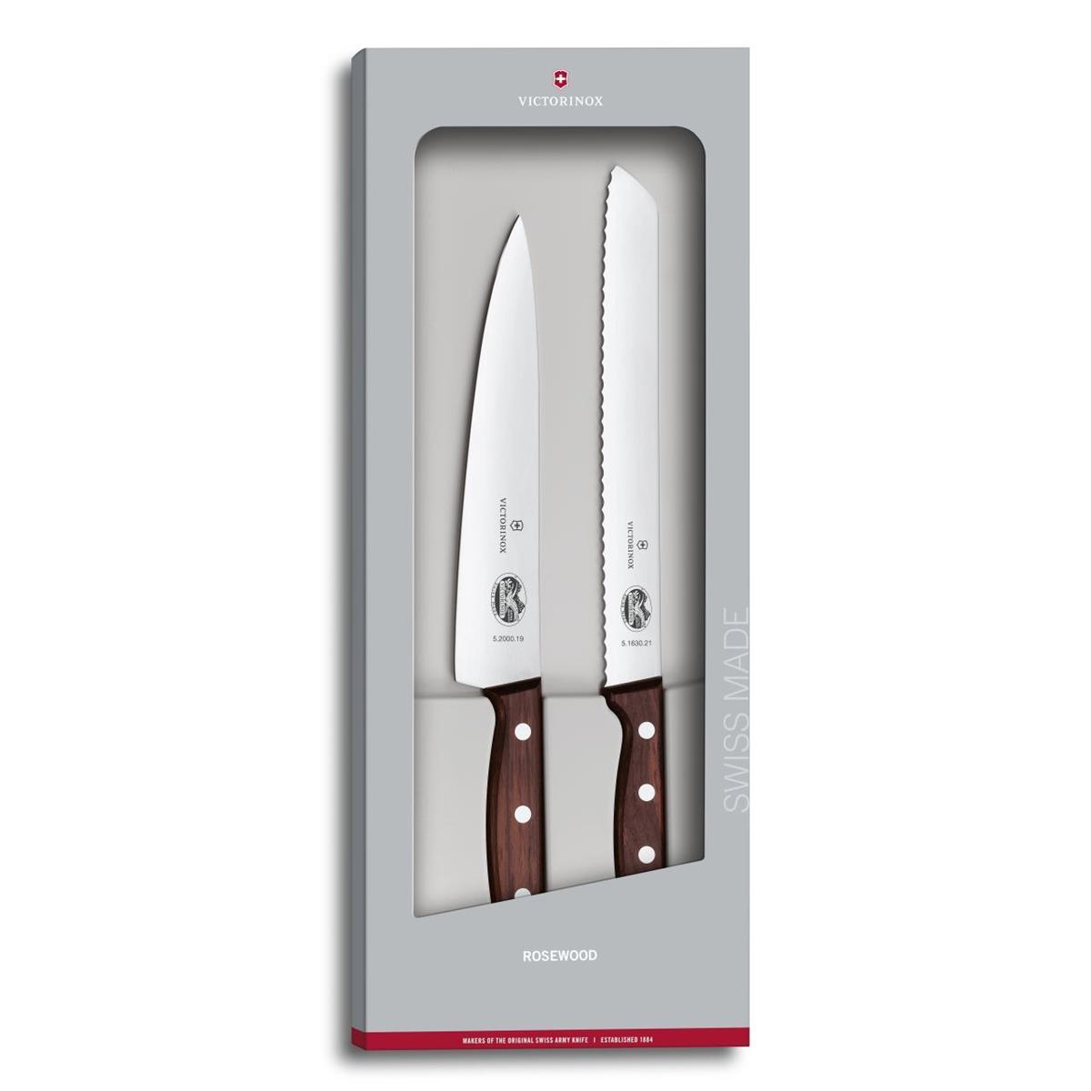 مجموعه دو عددی چاقو و کاردک ویکتورینوکس دسته چوبی قهوه ای 5.1020.21G