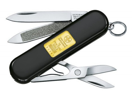 چاقوی کوچک 6 کاره ویکتورینوکس مشکی با یک گرم شمش طلا Classic 0.6203.87