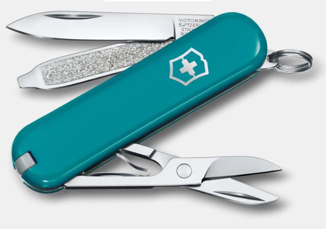چاقوی کوچک 7 کاره ویکتورینوکس فیروزه ای در جعبه هدیه Classic 0.6223.23G