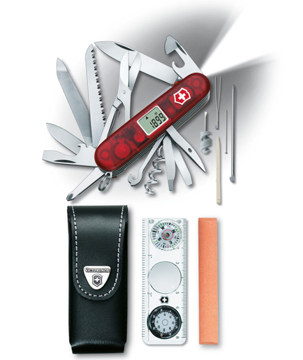 مجموعه سه عددی چاقوی 41 کار متوسط ویکتورینوکس قرمز شفاف همراه با کیف، قطب نما و چاقو تیزکن Expedition-Kit 1.8741.AVT