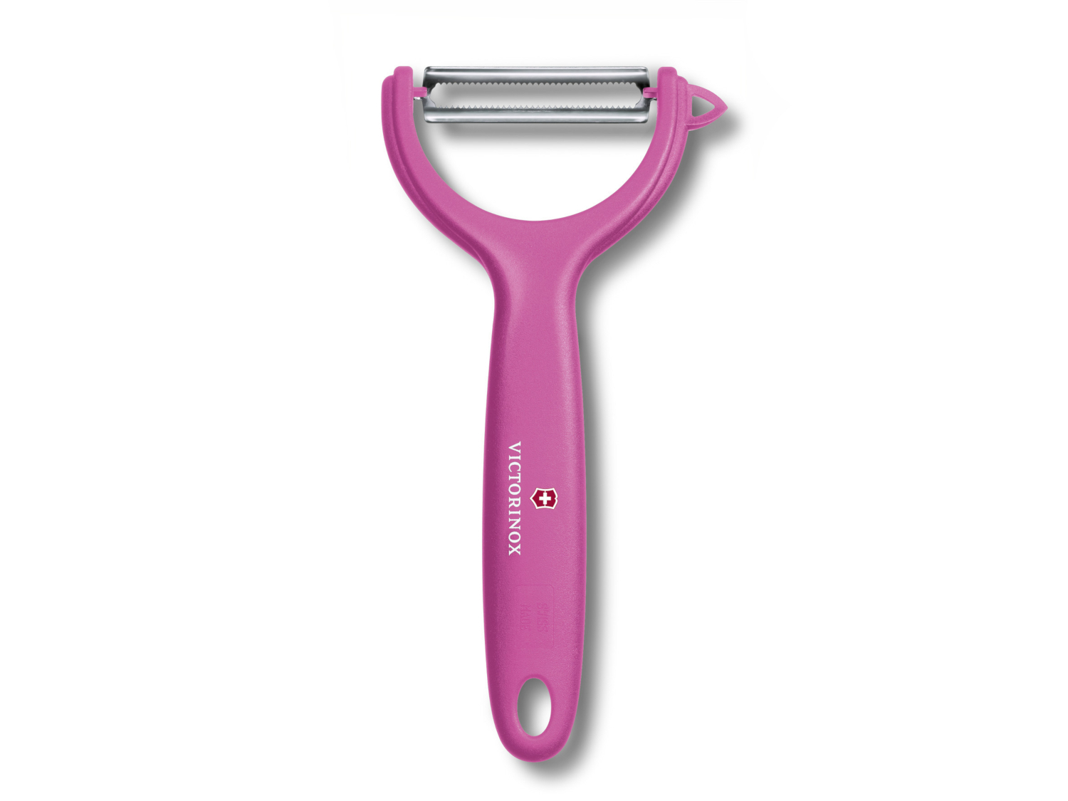 پوستکن گوجهفرنگی و کیوی ویکتورینوکس مدل 7.6079.5 به رنگ صورتی، یک ابزار آشپزخانه سوئیسی است که برای پوست کندن دقیق و آسان گوجهفرنگی و کیوی طراحی شده است. این پوستکن با تیغه دندانهدار فوقالعاده تیز و دو لبه، به راحتی از پس پوستهای ظریف این میوهها برمیآید و آنها را بدون آسیب رساندن به گوشت میوه جدا میکند. این توانایی در پوست کندن اقلامی که معمولاً چالشبرانگیز هستند، آن را به ابزاری بسیار کاربردی تبدیل میکند.