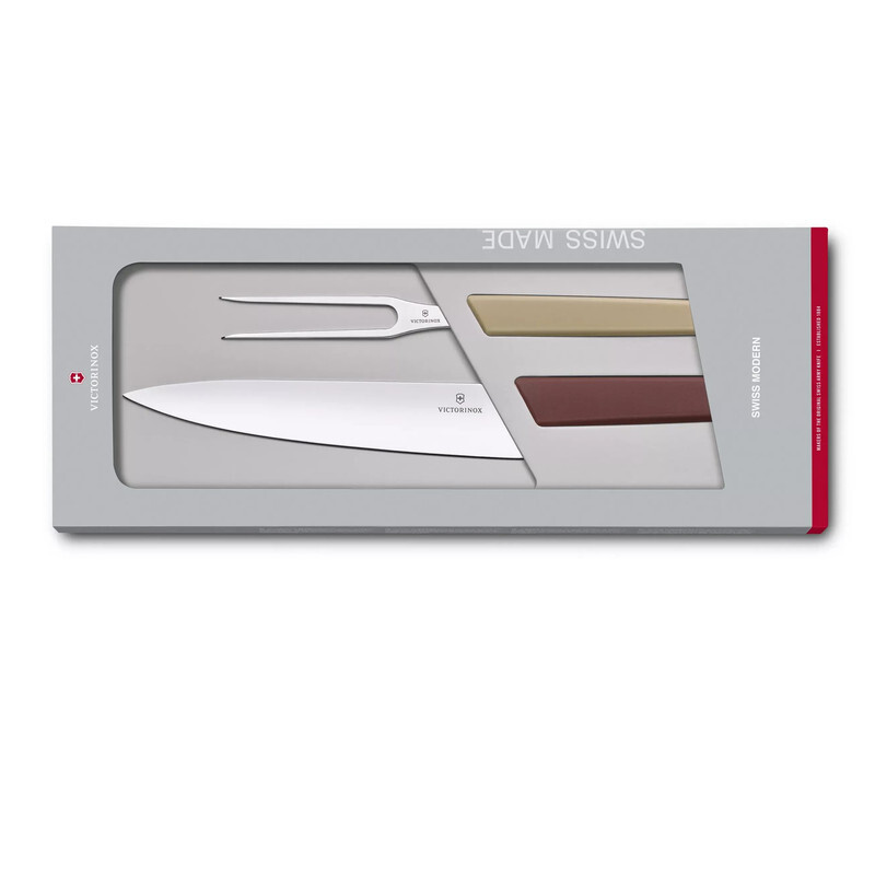 ست کاروینگ 2 تکه Victorinox Swiss Modern با کد 6.9096.21G، ابزاری بینظیر برای برش انواع گوشت، بدون توجه به اندازه مفصل، است. این ست شامل یک چاقوی شف و یک چنگال کاروینگ با طراحی ارگونومیک است که راحتی و دقت بینظیری را در حین کار فراهم میکند. این ست جایی است که زیبایی واقعی با کیفیت واقعی تلاقی میکند. هر دو چنگال و چاقوی کاروینگ به صورت ارگونومیک برای راحتی نهایی در دست گرفتن طراحی شدهاند. دستههای مصنوعی چندرنگ، ظاهری مدرن و جذاب به این ست میبخشند. تیغههای این ست از فولاد ضد زنگ مقاوم در برابر سایش ساخته شدهاند. چنگال دو شاخه، گوشت را محکم در جای خود نگه میدارد و تیغه فولادی ضد زنگ با لبه صاف، به راحتی هر نوع گوشتی را برش میدهد. این ست با دستههای مصنوعی برای چسبندگی صاف و مطمئن، مهارت شما در برش را ارتقا میبخشد. تمرکز بر ارگونومی دستهها در ست کاروینگ نشاندهنده درک Victorinox از نیازهای کاربران حرفهای و خانگی برای راحتی و کنترل در کارهای سنگینتر آشپزی است. برش گوشت، به ویژه گوشتهای بزرگ، میتواند کاری زمانبر و نیازمند نیروی زیاد باشد. دستههای ارگونومیک در اینجا نه تنها برای راحتی، بلکه برای افزایش کنترل و کاهش خستگی و خطر آسیبدیدگی حیاتی هستند. Victorinox با تاکید بر این ویژگی، به نیازهای عملکردی و ایمنی کاربران در کارهای سنگینتر آشپزی پاسخ میدهد
